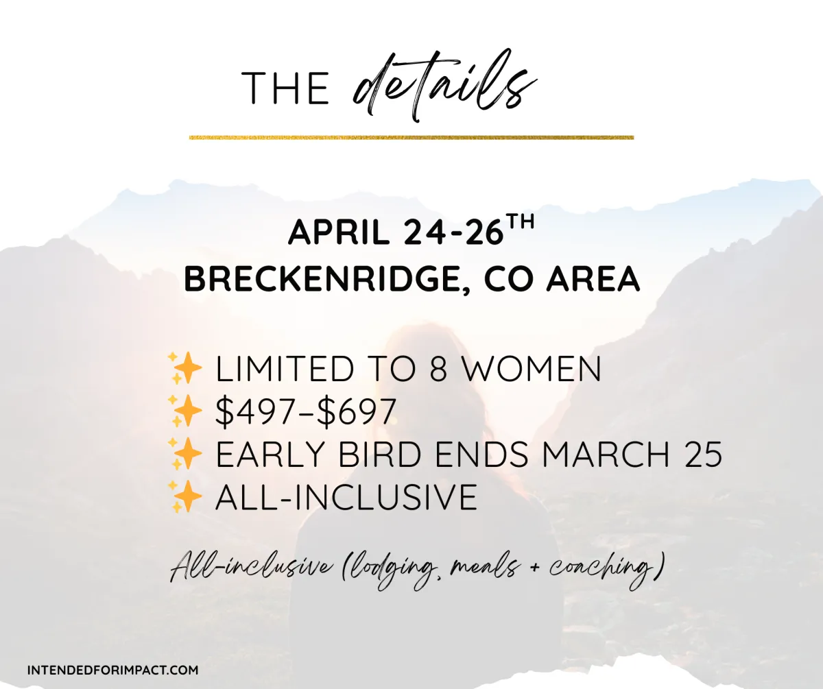 An intimate retreat with 6-8 Women. A slower and more relational way of experiencing Intended for Impact.